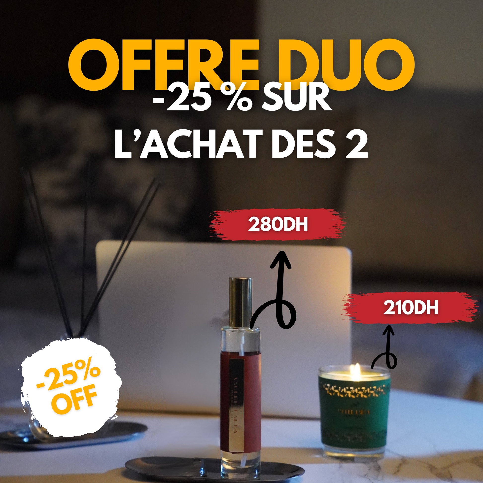 Succombez à l'élégance avec notre pack exclusif Bougie Parfumée et Spray.
